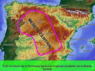 SPANISH: La Meseta Central es una gran llanura elevada que ocupa el centro de la península ibérica.